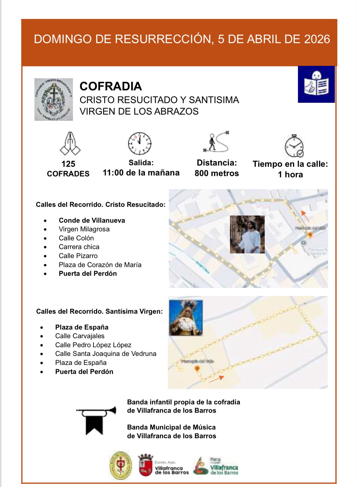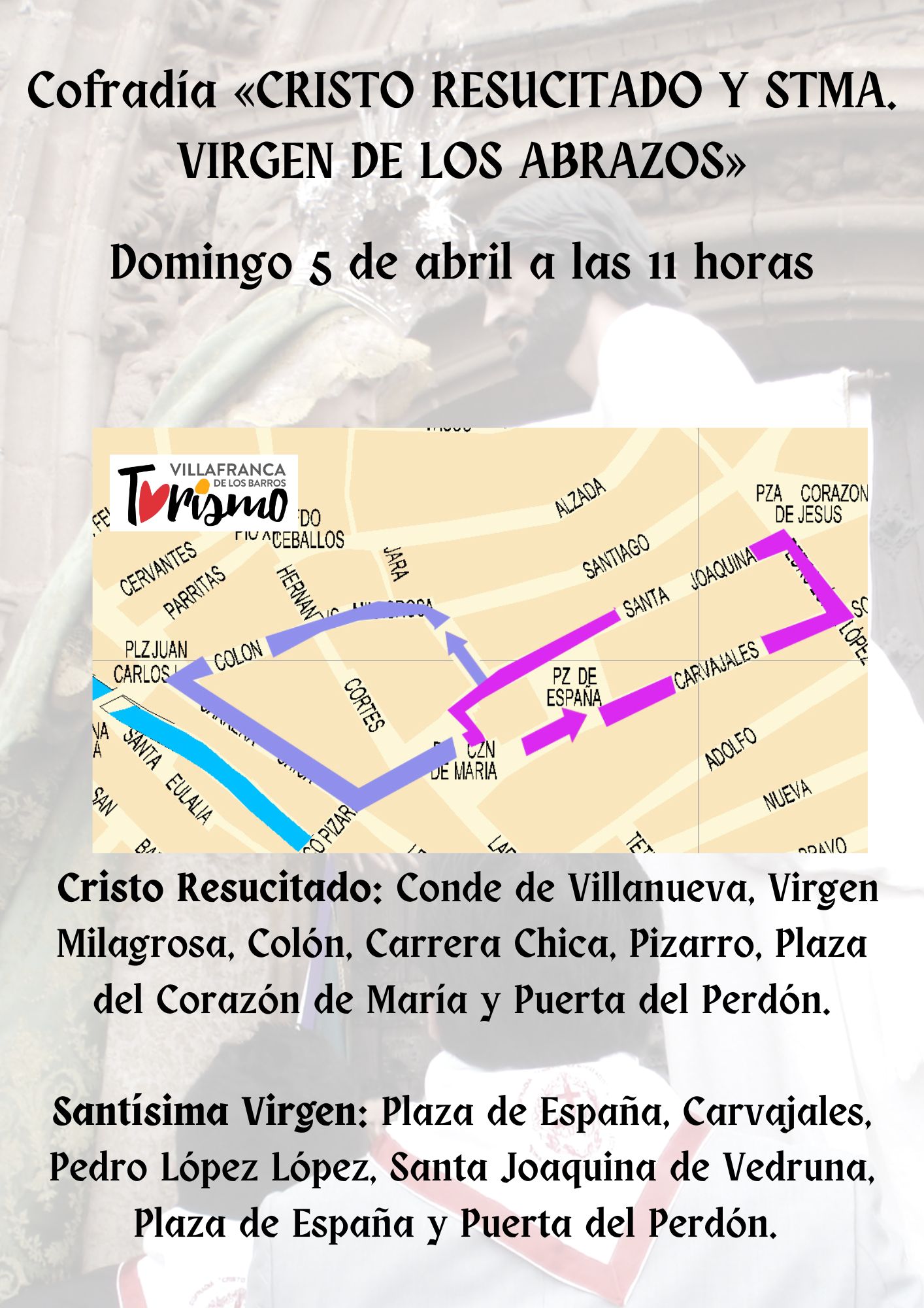 Cristo Resucitado: Conde de Villanueva, Virgen Milagrosa, Colón, Carrera Chica, Pizarro, Plaza del Corazón de María y Puerta del Perdón.